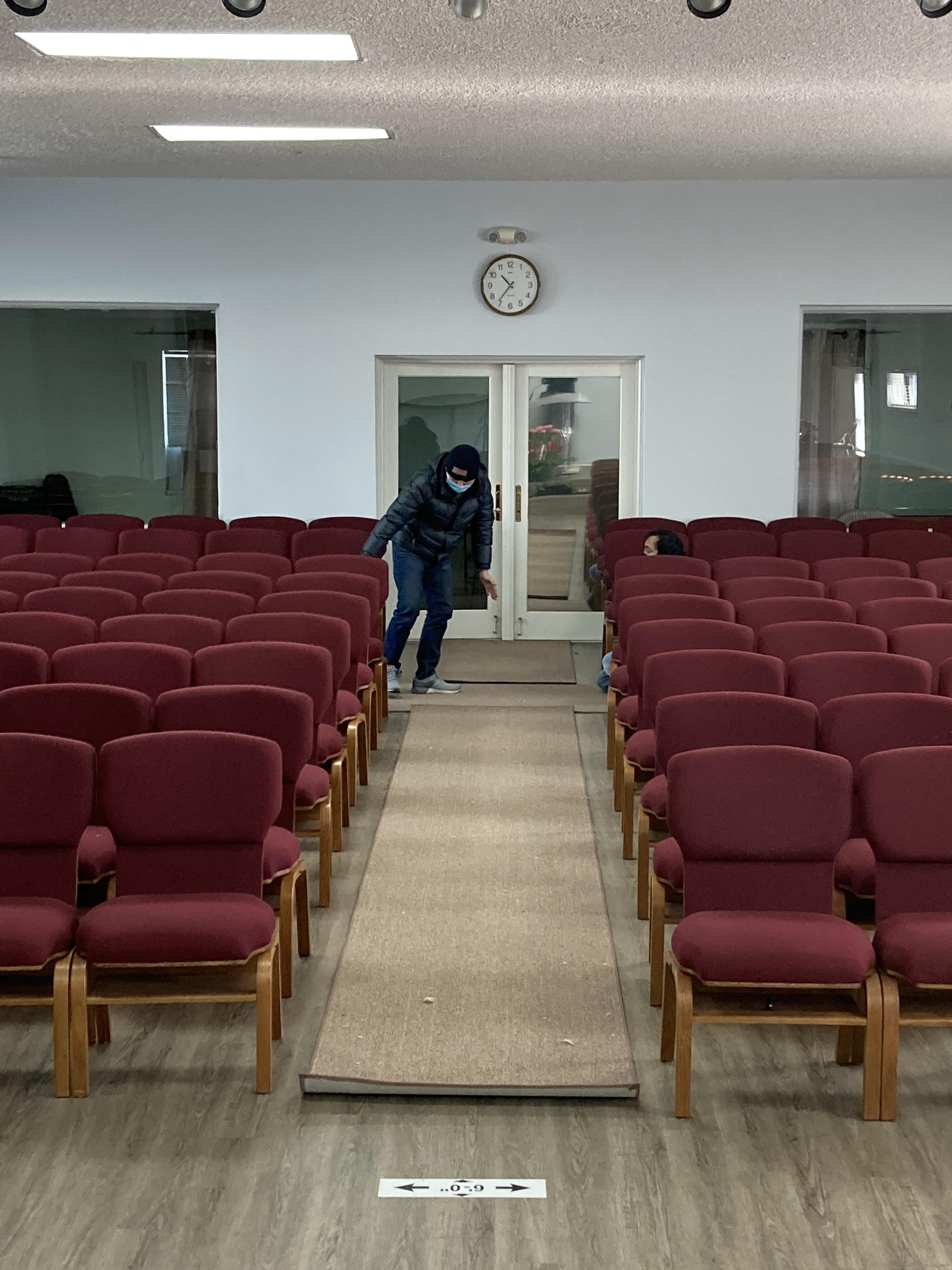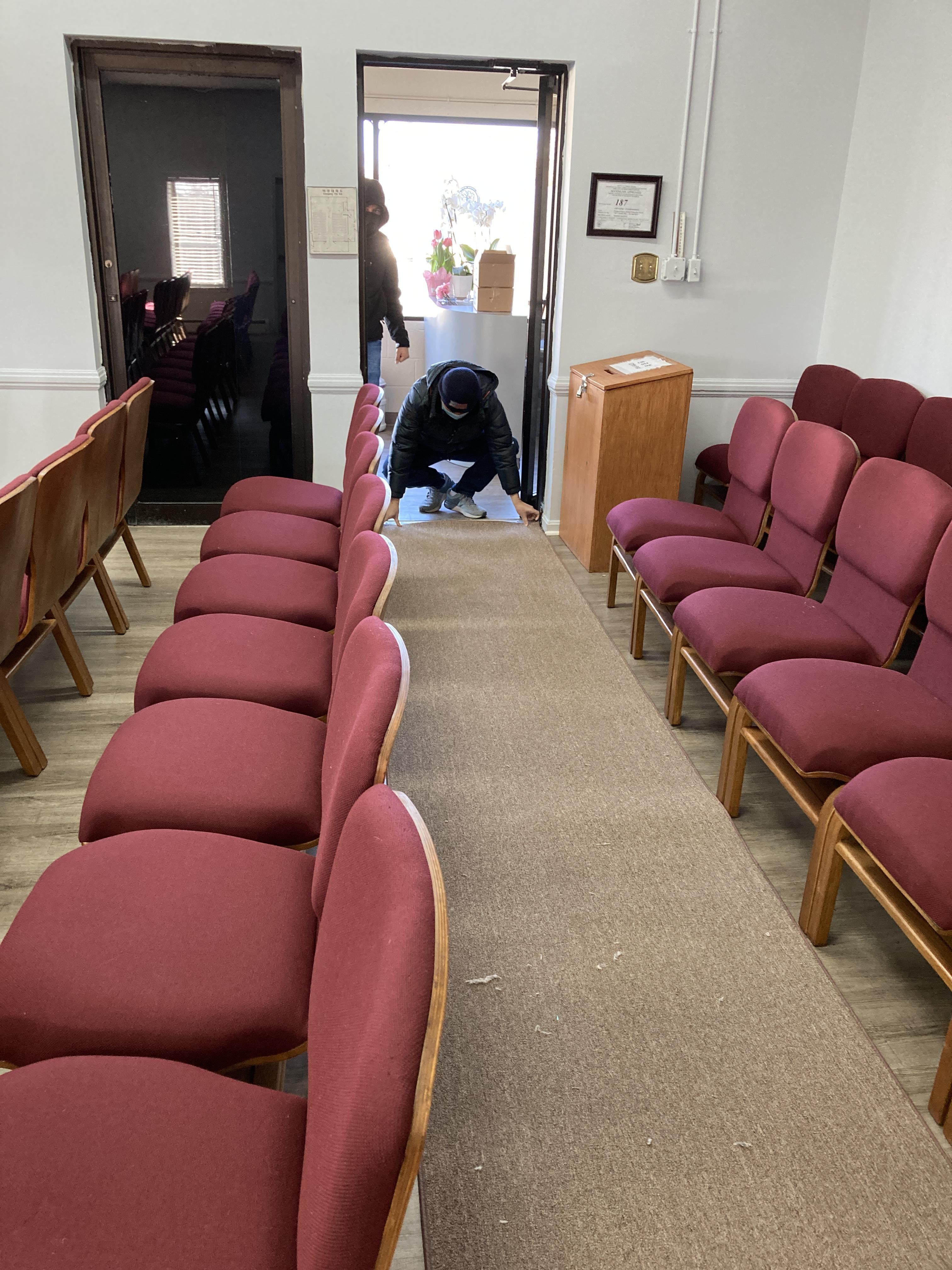 귀하신 분의 섬김으로 인해 본당 통로에 카펫을 작업하게 되었습니다.
