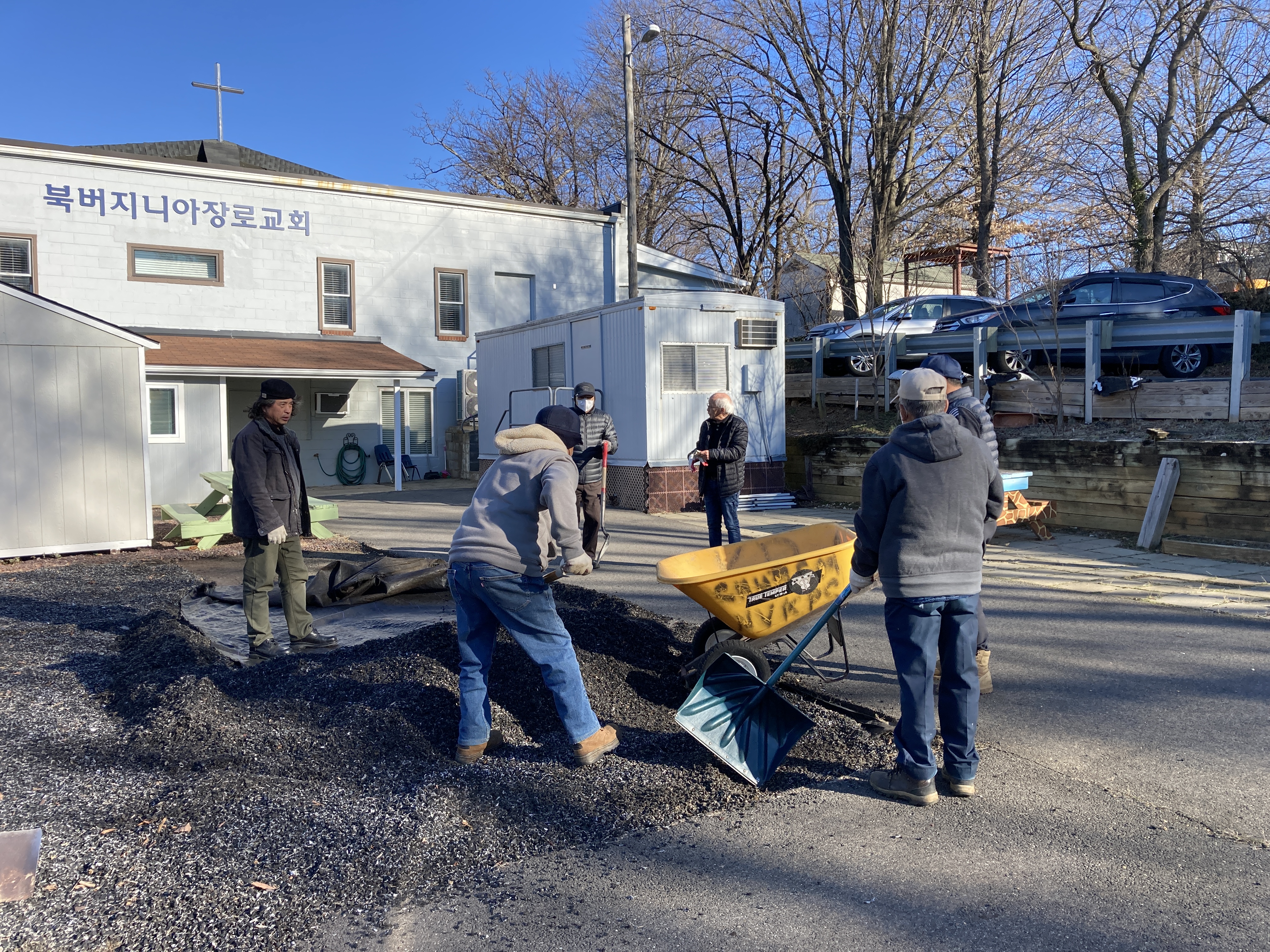 많은 분들이 모여서 놀이터 작업을 진행했습니다.