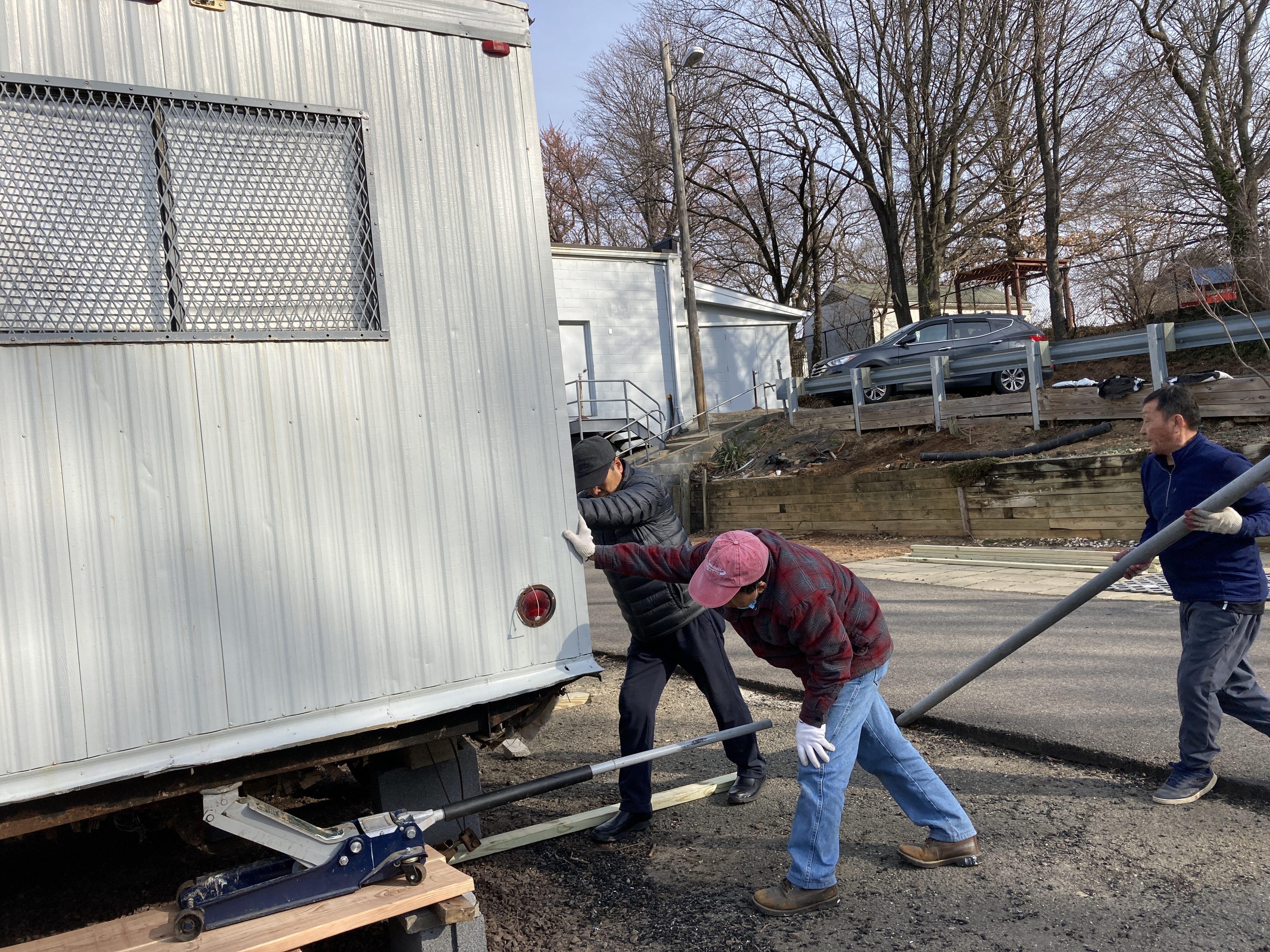 새벽 찬 바람을 맞으면서 지난 번에 옮겨 놓았던 컨테이너의 수평을 잡는 작업을 하였습니다.