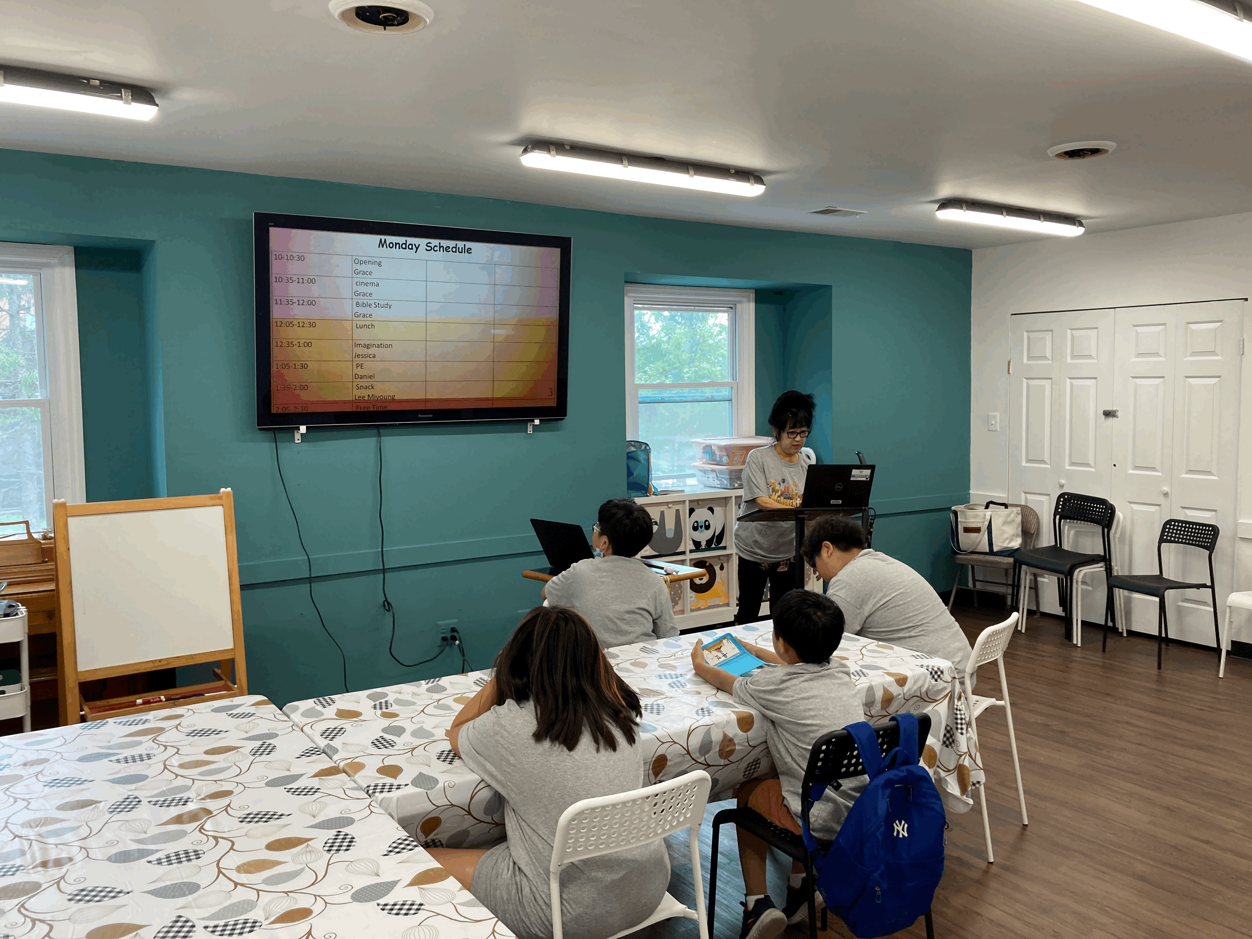 전도사님과 선생님 그리고 보조 선생님들이 아이들에게