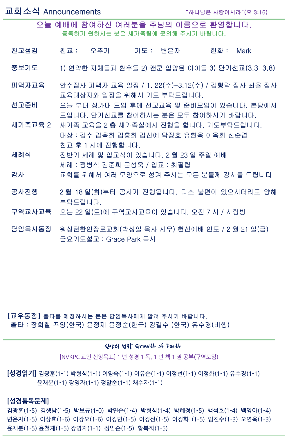 [온라인 주보] 2월 16일 주일